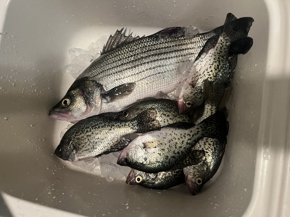 两老的周末晚餐今天风小,不合适钓鱼。所以,昨晚叫上两个酒友喝两瓶。今天领导说:晚上有老朋友过来住一晚,点名要吃你的辣椒鱼。你作一碗吧。我呢,你钓的鱼吃厌了,想吃你作的油煎三文鱼,就是那个腌牛排用的seasoning加盐腌的做法。。。好吧,一碗苦瓜一碗豇豆,农家菜就得豪爽点,大碗大盆。老朋友要先陪孩子吃晚饭,然后过来只吃鱼,我们就不等她。明天大[
