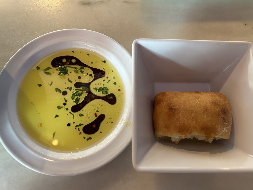 餐前小面包配橄榄油和醋,我爱吃面包沾橄榄油,但加醋还是第一次吃到: