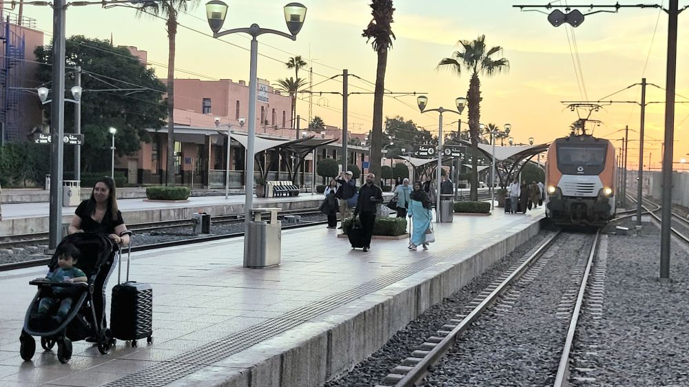 这次的票是一等车厢,票价215迪拉姆,约合35加元。从卡萨到马拉喀什,行车要将近4小时,所以不算太贵。启程前我们尝试了好多次想上摩洛哥国铁的官网预定车票,但怎么也点不开网页,所以一直担心到时买不到车票。没想到火车票有的是,还是一等厢。其实摩洛哥的铁路交通很好,白天从卡萨去马拉喀什每小时都有一班,错过时只需再等一个小时就有了。