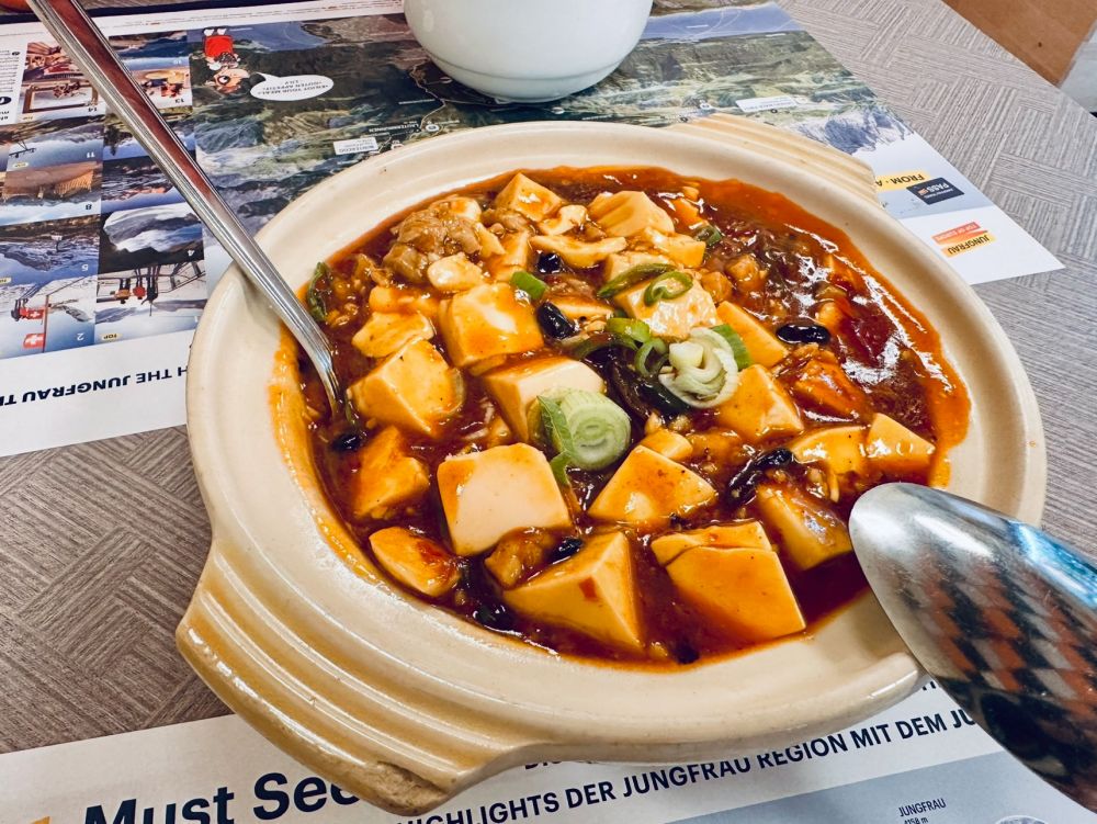 因特拉肯偏街上"大红灯笼高高挂"。楼下是家中餐厅。
