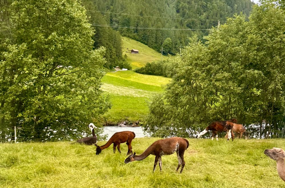 瑞士农民牧养的动物看起来像羊驼和美洲驼(alpacas and llamas ),用 ChatGPT一查,还真是。这些羊驼似乎很开心,如和南美有什么干系的话,它们也早把他乡当故乡了。