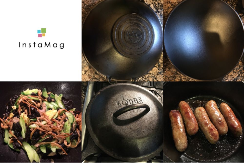 周末在Target买了一大一小两个一出的铸铁锅。这个铸铁的炒菜锅真不错,炒的菜的口感跟国内铁锅爆炒出来的相近。大炒菜锅确实挺沉的,小锅带锅盖不算太沉。照下面的方法开了锅。用大锅炒了木樨肉,小锅煎了几个sauage感觉不错。
