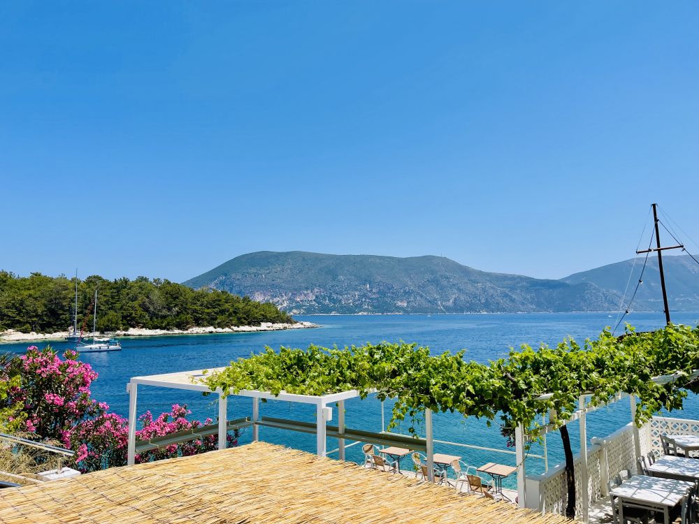 来到凯岛的第二天,我们从阿索斯出发,驱车沿着盘旋的山路向北。沿途山海相映风光旖旎,在灿烂的阳光下,心情好到极点。半小时后抵达菲斯卡多(Fiskardo),把车停放在港口附近的停车场,步行几分钟便来到小镇。