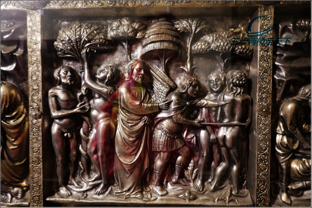 这座主教堂收藏着两件珍贵的圣物:一件是圣地亚哥的遗骨,据现场的神父介绍说,是耳后的一片颅骨,另一件则被认为是圣地亚哥母亲的遗骨。它们共同被供奉在名为 Cappella di San Jacopo(圣地亚哥小礼堂) 的祭坛中。祭坛的后方,有一座镶金的银质圣龛,它由多位托斯卡纳金匠在13至15世纪间,耗时200年共同打造。圣龛装饰华美、光彩夺目,曾被誉为中世纪金银器艺术的巅峰。
